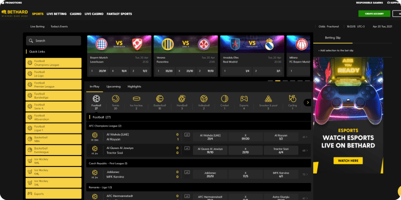 Football is certainly the biggest sport on the Bethard website. Fans of the game will be pleased to see thousands of markets available, with many different betting opportunities available on every game. Away from football they offer markets on many other sports, although these are limited. Horse Racing is one area they are not too good in, offering basic markets on the days racing, with no additional markets or ante post betting available.
